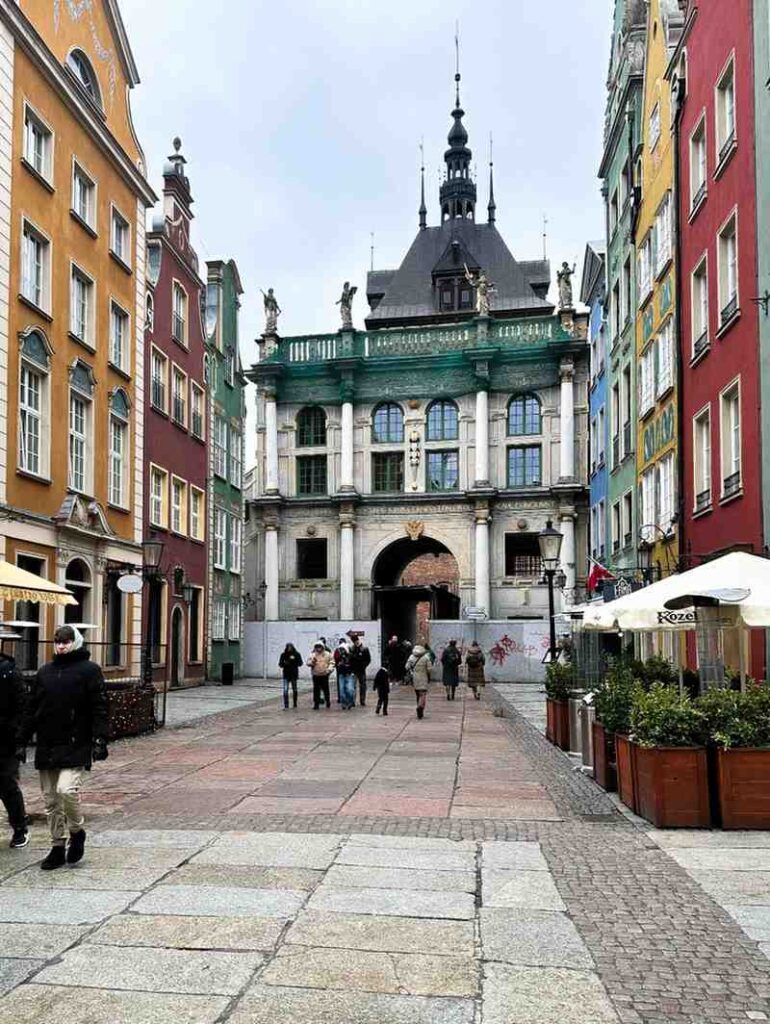 Il punto di partenza è il Dlugi Targ, la via principale: un tripudio di palazzi color pastello che sembrano disegnati nei libri delle fiabe. Qui si trovano la Fontana di Nettuno, il Municipio e la spettacolare Corte di Artù, che racconta la ricchezza dei mercanti della Lega Anseatica. Da non perdere la Porta Verde e la Porta d’Oro, che segnano l’ingresso alla città vecchia dai due lati opposti della Dlugi Targ (NB: a marzo 2025 la Porta Verde risultava in ristrutturazione, da verificare il suo stato prima di partire se ci tenete a vederla).